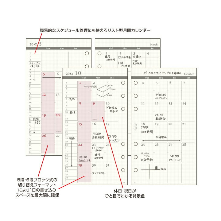 ※サイズ間違いにご注意ください 品番 521-103 サイズ バイブル(170mm×95mm) 素材 オリジナル手帳用紙(クリーム紙)(2mm方眼入・ 新年度対応 2019年12月〜2021年3月まで) 内容 2019.12〜2021.317枚(見本・付録除) 2020〜2021年間カレンダー2020年六曜一覧表年齢早見表 パーソナルノーツ2mm方眼メモ 備考 旧デザイン品番 501-19老舗メーカーの工夫が詰まった、使いやすさ 【付録】 書き込める六曜が嬉しい♪